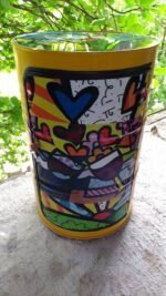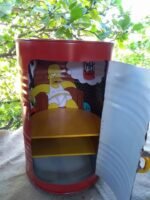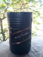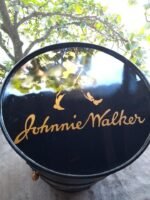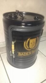 Peça feita artesanalmente a partir de tonel reciclado, com pintura automotiva de alta resistência, adesivação personalizada e tampo superior com imagem resinada. Conta com duas portas com dobradiças, duas prateleiras internas, e rodízios de silicone com trava, garantindo mobilidade com segurança.