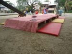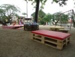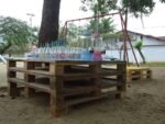 2 mesas baixas de pallet fechado com pés de tocos para piquenique (capacidade para 10 crianças)